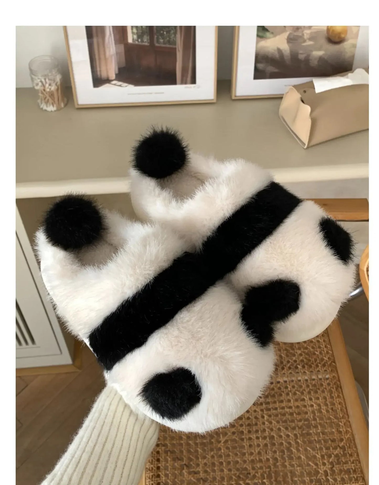 Cozy fluffy indoor Panda Slippers for winter for winter with platform sole women cute design