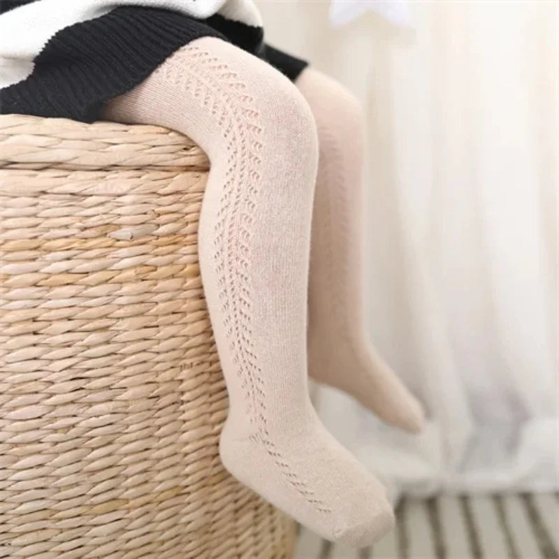 Spring -summer baby kids girl tights fashion knitted ribbed pantyhose - solid mesh leggings for girls, toddler baby tights (0-5Y)