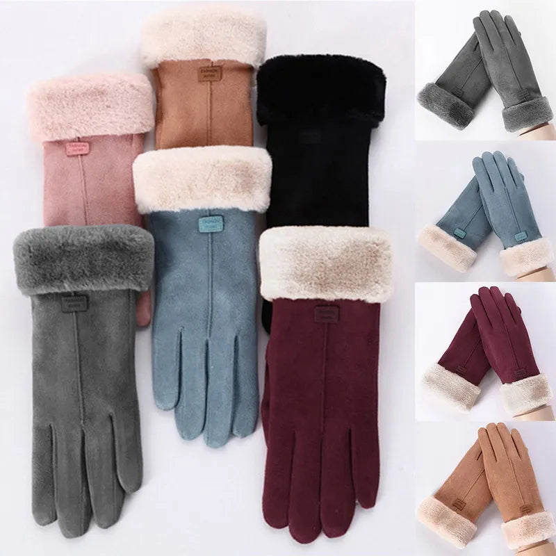 winter female cashmere feel warm suede leather mittens with double thick velvet plush cozy touch screen driving gloves